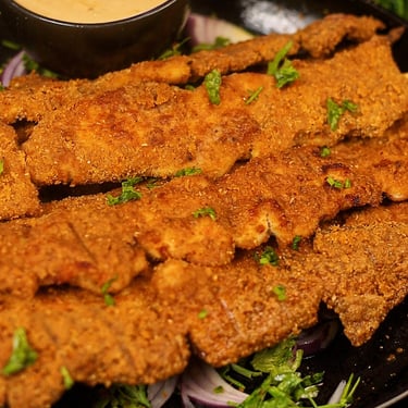 ١ كيلو فيليه بالتتبيله الارجنتيني او ( ١ معلقة مسترده - ملح وفلفل وزعتر وثوم وبصل باودر - مية بصل )