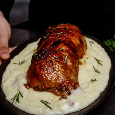 (٢ لتر ميه - ¼ كوب ملح -¼ كوب سكر - زعتر او اي اعشاب عطريه وورق لورا وشرايح برتقال لو متوفر وصويا صوص )