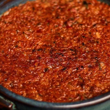 ½ كيلو طماطم مبشوره ملح وفلفل وكزبره وكبابه صيني وكمون