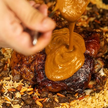 ربع معلقه صغيره قرنفل - ١ معلقة صغيره بابريكا ١ معلقة صغيره ورق لورا مطحون - كيس مرقه فوريه (اغلب المطاعم بتستخدم مرقة دايما)