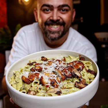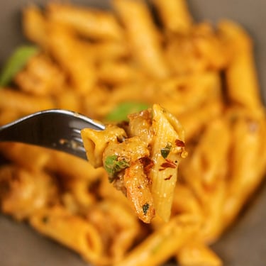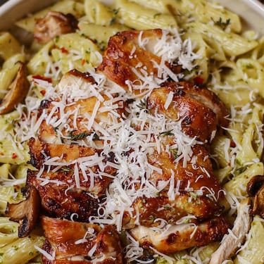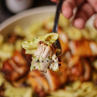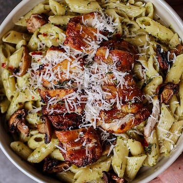 مكرونة بالبيستو والدجاج المشوي