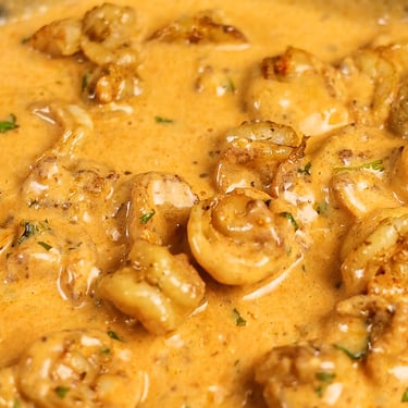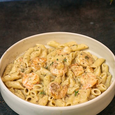 مكرونة بالجمبري بالصلصة والريحان